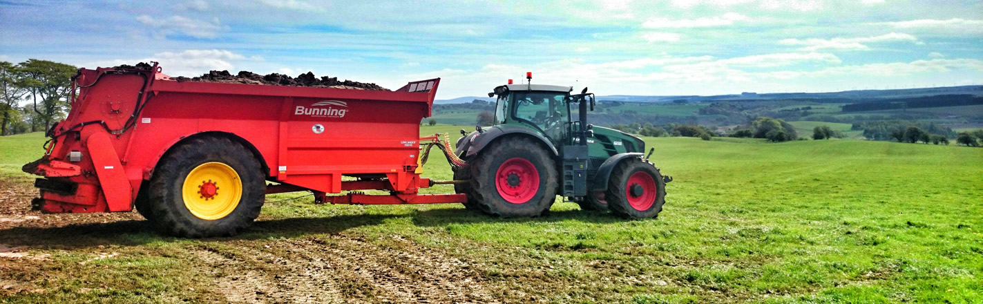 Our Poultry Manure service using our state of the art machinery ensures that all the nutrients available are accurately and evenly applied to our customers soils. We use Fast and Efficient Fastrac tractors and 24ton tri-axle trailers to deliver to fields where artic Lorries cannot. We have invested in a top of the Range Bunning HBD Spreader which uses discs to spread Poultry manure up to 24m with an exceptional spread pattern. The Spreader is Equipped with Weigh-Cells and an Auto-Rate Controller to ensure even, accurate coverage. The Trailers are also equipped with Weigh-Cells to ensure the correct tonnage is delivered.